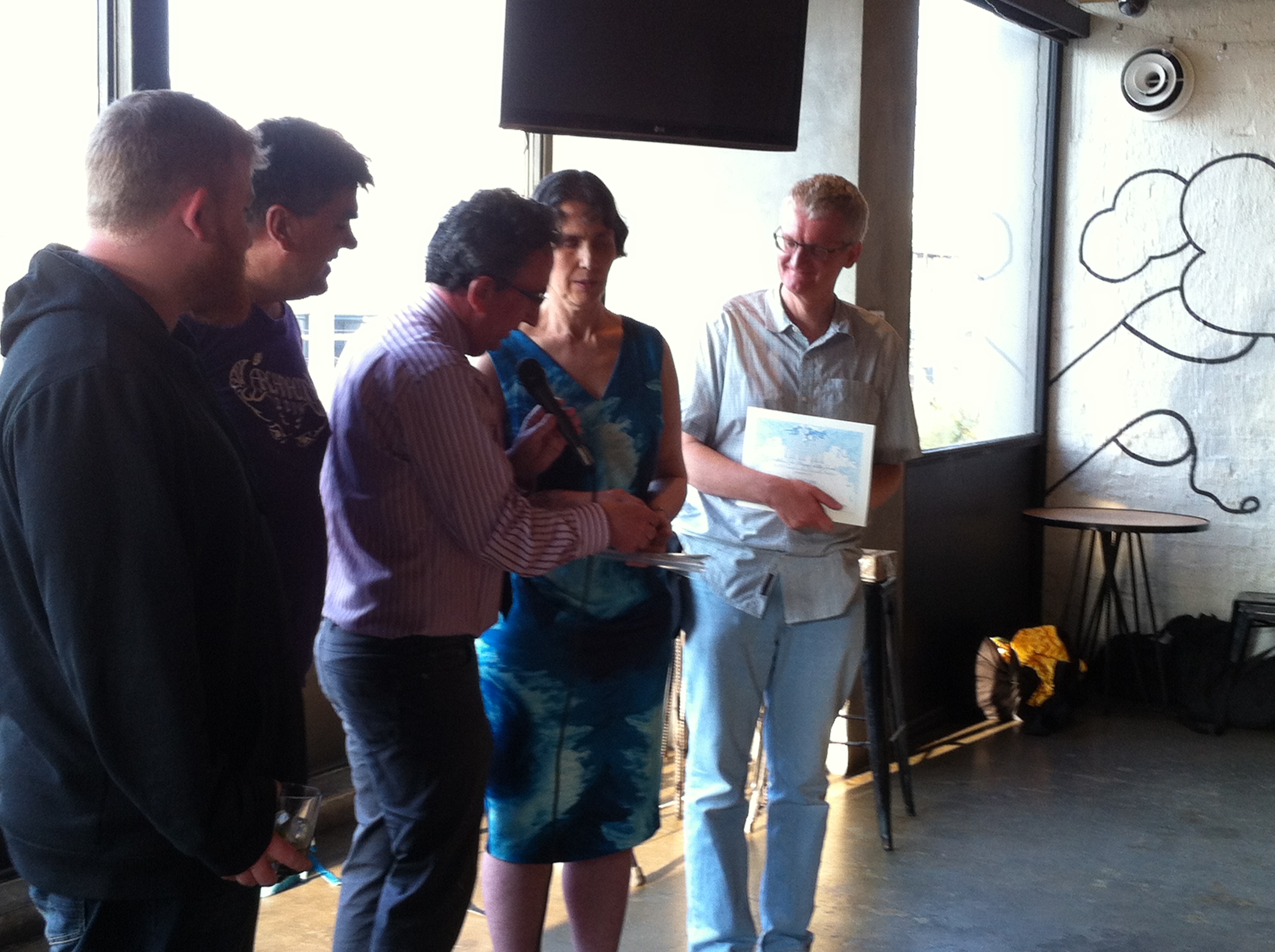 Ramona Mandy and John Coleman present Mark Morrison, Vice President of Chaosium, Michael O’Brien and James Coquillat with the Best Scenario award for Reign of Terror