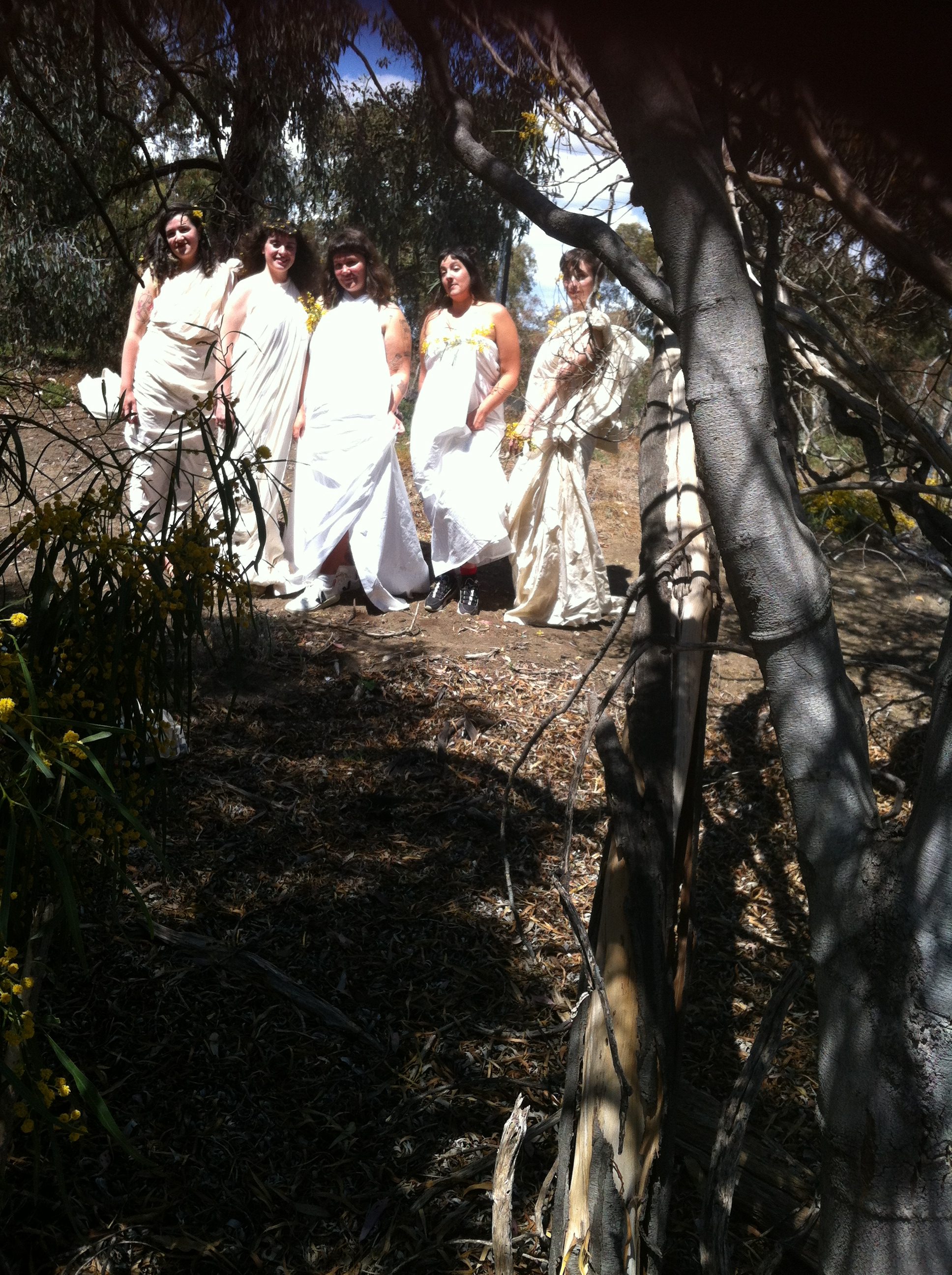 Filming finished the modern Wattle Nymphs floated away across the railways line still in their draperies and drove off in a four wheel drive. Not so 1920’s there.