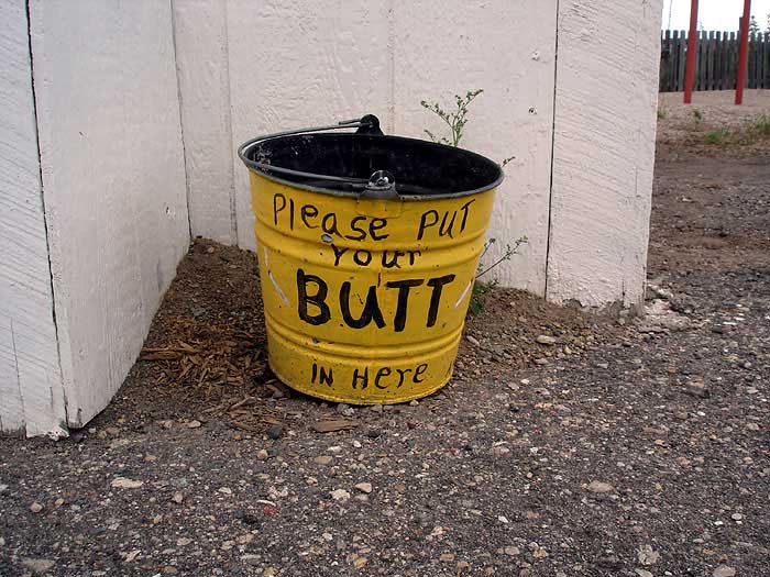 Outside the station door I have an ice cream container full of sand for people to put cigarette butts in. It cuts down on the mess smokers make. Lately the butts have been disappearing and I’ve naively been assuming the cleaner is emptying them out. So I am terribly embarrassed to walk out of the station and discover a neatly dressed woman my age, crouched over the butt bucket collecting the butts. I cry “opps” as if I’ve interrupted someone doing something shameful, which to my mind I have. But of course that makes it worse because now she knows I’ve noticed. I feel I have created a difficult social situation.
