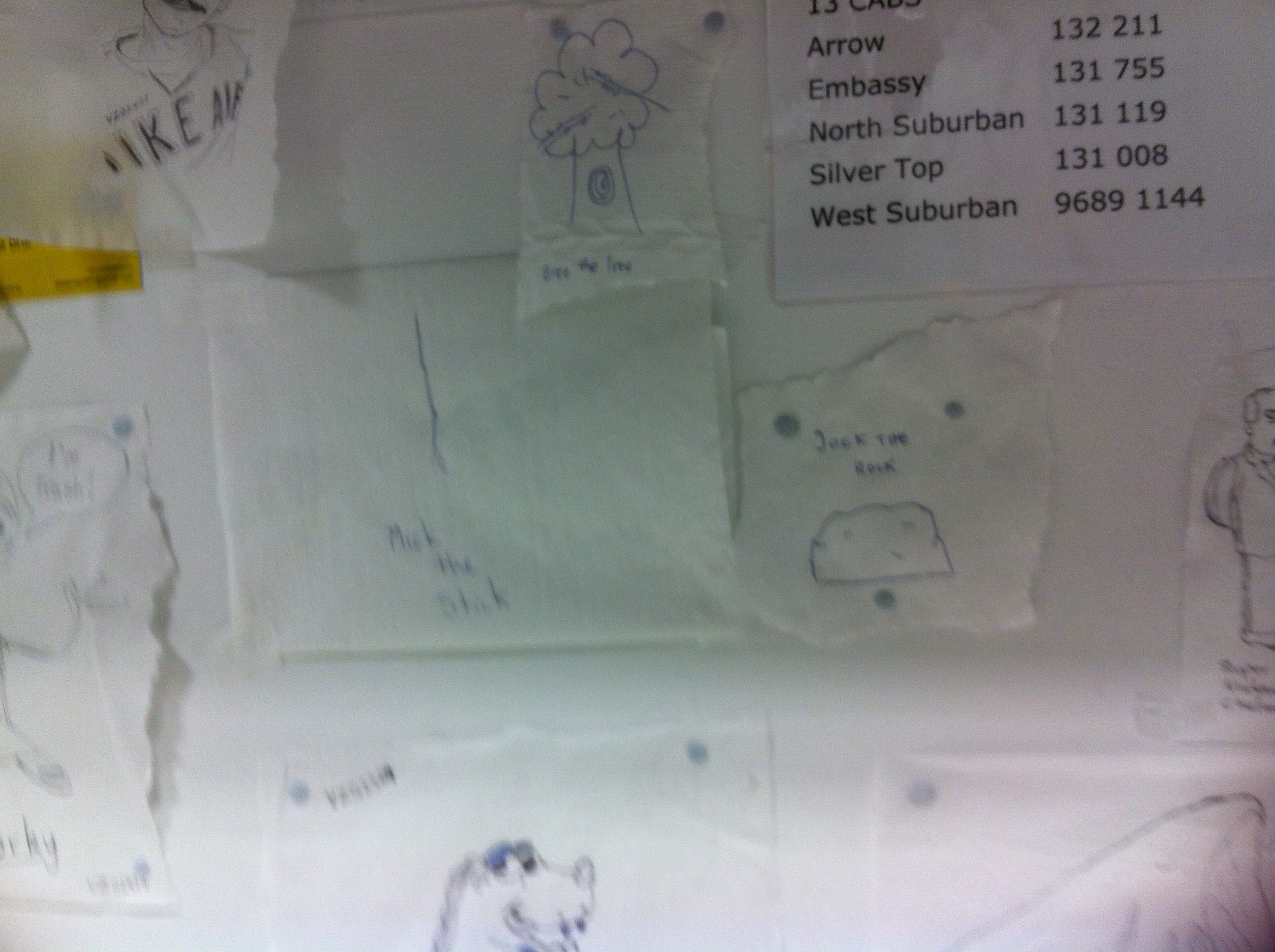 Since then many of P.S.O’s who staff Zoo Station on a rotating roster, have added little cartoons/sketches to the wall signing them with their departmental numbers. Such a pleasure to open up and see what popped up last night. Some are quite talented, some seem to be tracings of pop culture figures but if you can’t draw… – well my favourite is one labeled Mick the Stick which is just a line. My least favourite is of a certain American President. Does he have to be everywhere?!! (an no I shall not put him in here.)