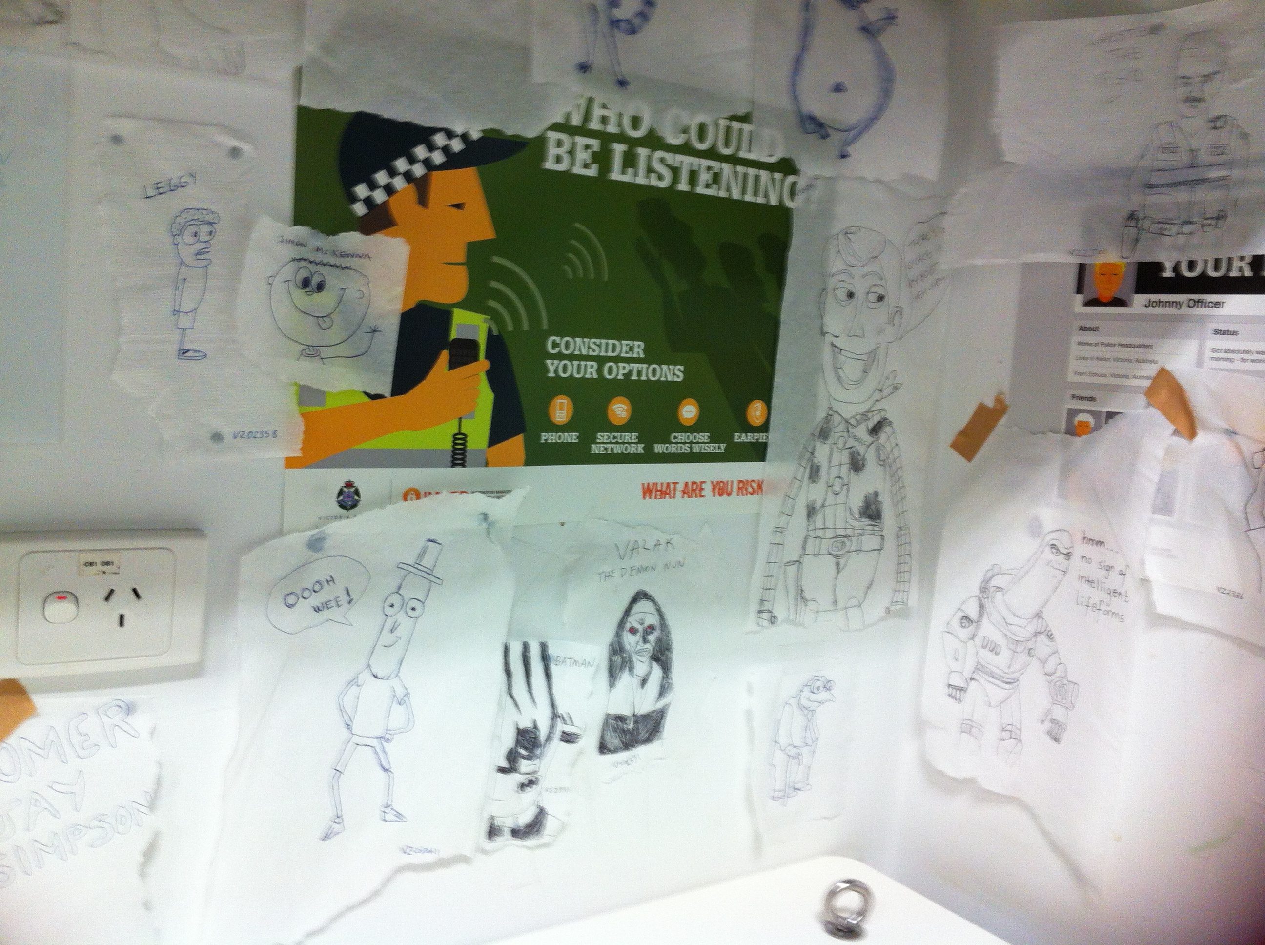 One late night meal break about six months ago, a bored Protective Services Officer drew a picture on a piece of paper towel and stuck it on the wall.
